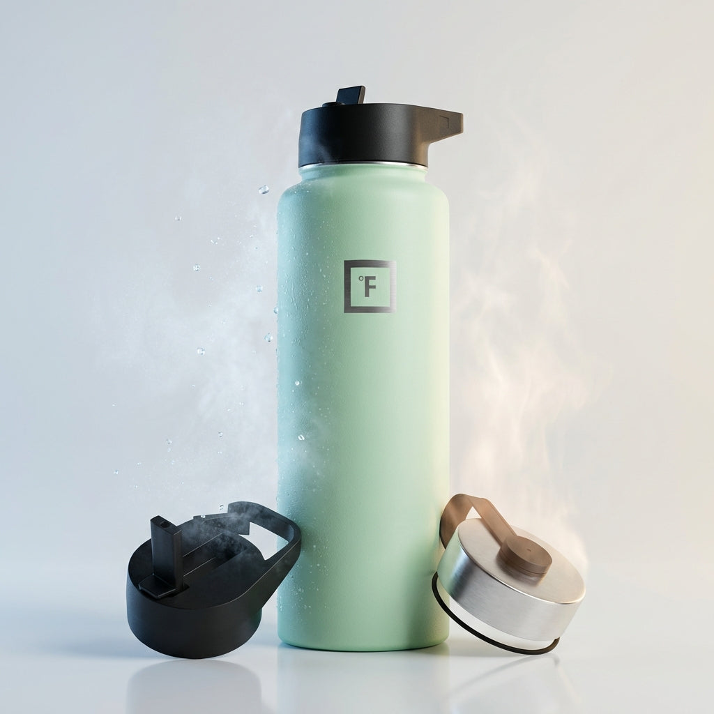 IRON °FLASK Camping & Hiking Hydration Flask with 3 Lids - Stainless Steel Double Walled & Vacuum Insulated Water Bottle - Leak Proof & BPA Free (Mint Straw - 40 oz)IRON °FLASK Camping & Hiking Hydration Flask with 3 Lids - Stainless Steel Double Walled & Vacuum Insulated Water Bottle - Leak Proof & BPA Free (Mint Straw - 40 oz)- Regular price
